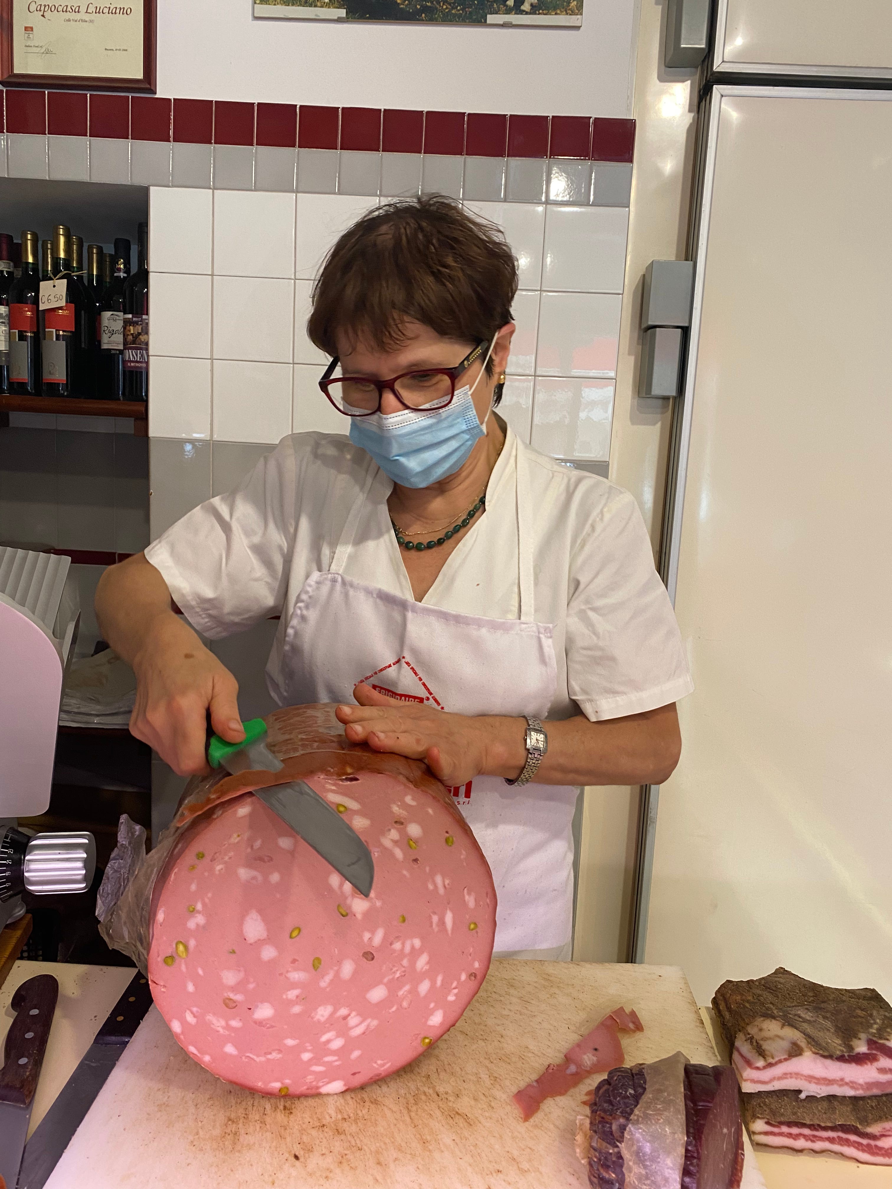 My first true introduction to mortadella was on one of these mornings. For those unfamiliar with mortadella, it’s a variety of steamed sausage, typical of northern Italy, served at ambient temperature and sliced into face-sized, wafer thin slices. The sausage is made using a blend of pork and fat, and a mixture of spices, often with pistachios studded throughout. Today, trendy Neapolitan pizzerias layer slices of mortadella over piping hot pizzas, allowing the natural fat in the pork to meld with the pizza toppings. Occasionally fresh truffles are added to the mortadella mix, making the salami, comp-let-ely irresistible.