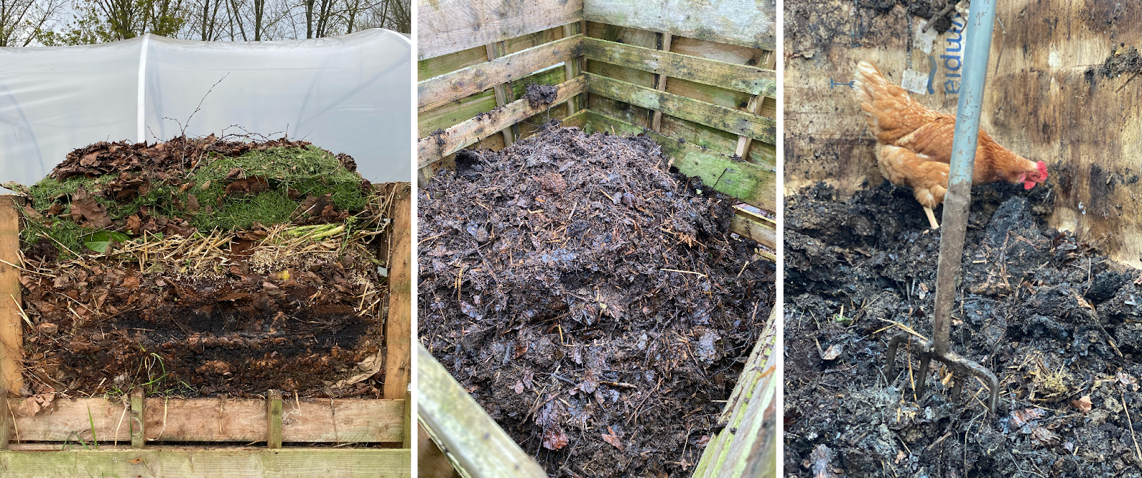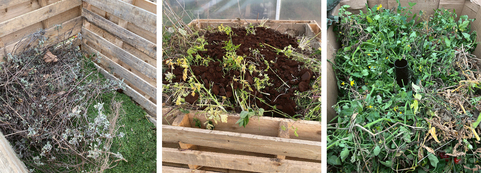 No matter your size of garden, I recommend a minimum of two bins, so you always have this turning opportunity: turning one into the other, correcting and adjusting, then leaving it to sit and mature while you start afresh in the empty bin.