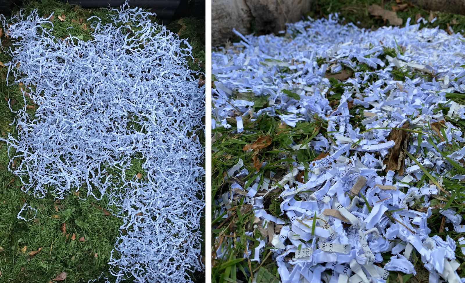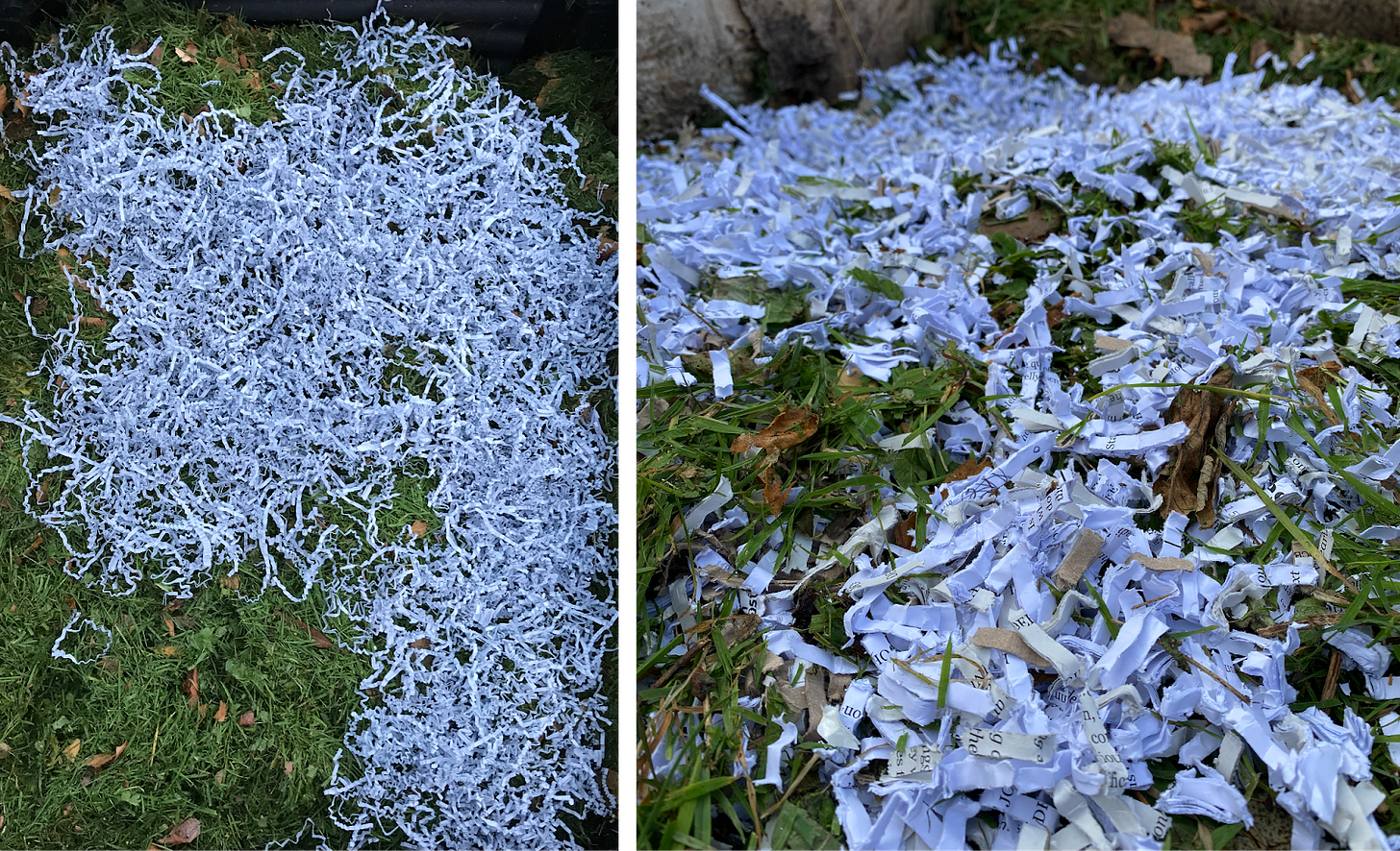 In a satisfying final act, I take these shredded paper ribbons to the garden and I scatter them on the compost heap.
